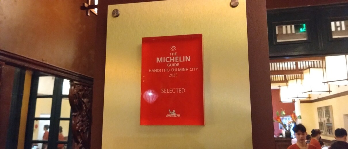 クアンアンゴンはミシュランに選ばれたお店。2023年と2024年のものが飾られてました。